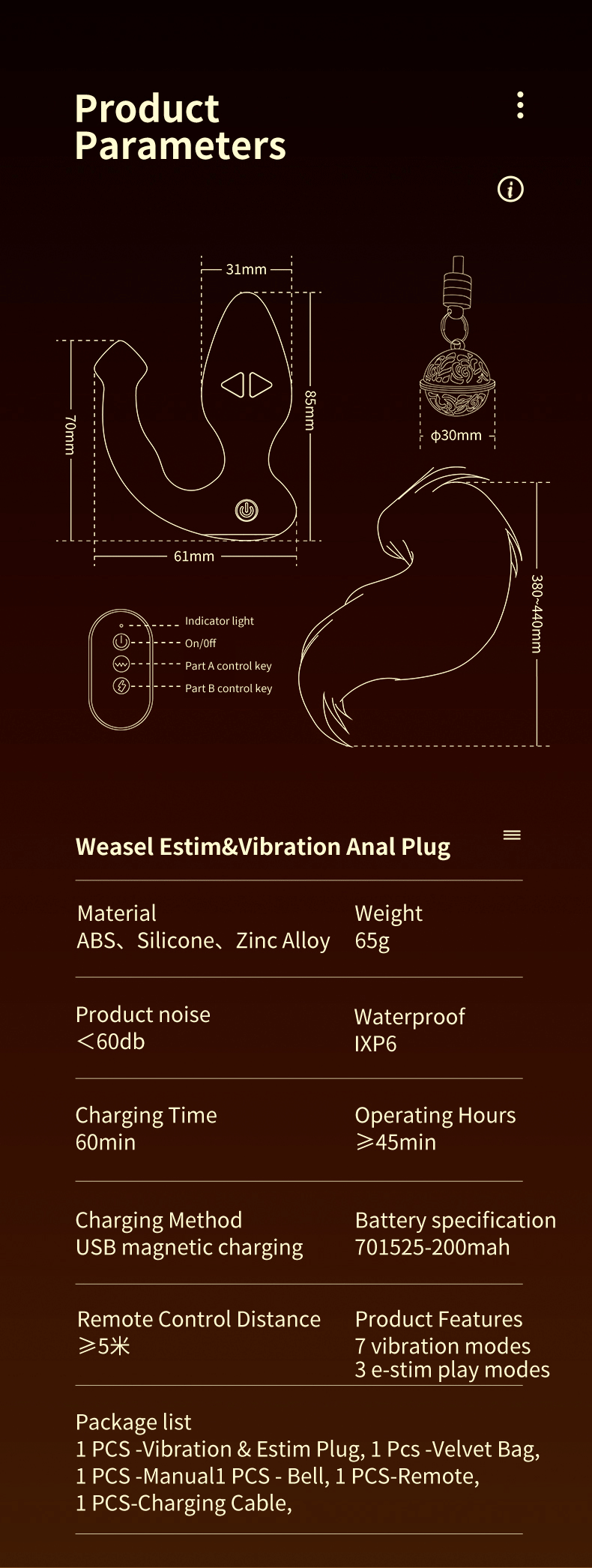 Vibration Anal Plug + Real fox tai 7-frequency VibrationPowerful Motor different pleasure every day in a week